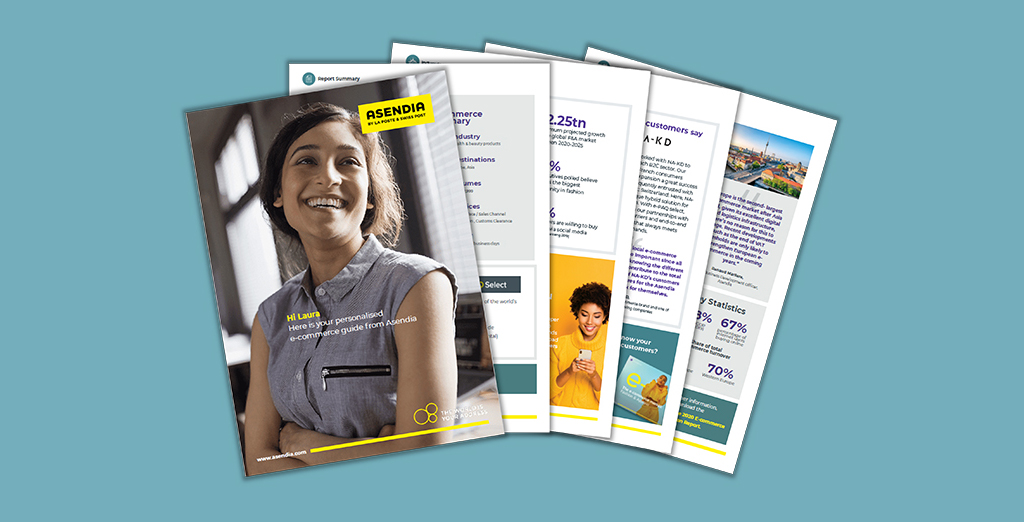 No Asendia customer is the same. They will work in different industries, have different needs, and are looking to offer their end customers a variety of services in different destinations. With this in mind, we decided to offer you an opportunity to create your own personalized PDF e-commerce guide, filled only with information that matches your company's needs. Your guide will give detail on your industry type and target destinations, and based on your requirements, it will make recommendations on Asendia products to help your business grow. It also includes some of our expert tips!
