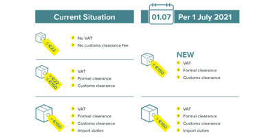 The VAT low value consignment relief (for consignments valued up to €22) is being scrapped, which will mean that all imports of small consignments from suppliers will be subject to VAT as of July 1, 2021. The changes to VAT will ensure EU-based sellers aren’t disadvantaged when dispatching goods within the EU and also prevent fraudsters under-declaring the value of their goods.